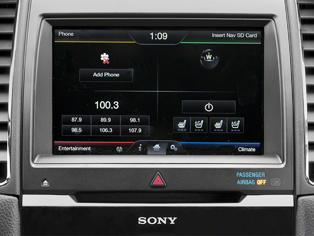 19 Premium Painted Aluminum Wheels, 4-Wheel Disc Brakes, 7 Speakers, ABS brakes, Air Conditioning, Alloy wheels, AM/FM radio: SiriusXM, AM/FM Stereo/Single CD/MP3 Capable, Auto tilt-away steering wheel, Auto-dimming Rear-View mirror, Automatic temperature control, Brake assist, Bumpers: body-color, CD player, Compass, Delay-off headlights, Driver door bin, Driver vanity mirror, Dual front impact airbags, Dual front side impact airbags, Electronic Stability Control, Exterior Parking Camera Rear, Four wheel independent suspension, Front anti-roll bar, Front Bucket Seats, Front Center Armrest, Front dual zone A/C, Front reading lights, Fully automatic headlights, Garage door transmitter: HomeLink, Heated & Cooled Perforated Leather Fr Bucket Seats, Heated door mirrors, Heated front seats, Illuminated entry, Leather steering wheel, Low tire pressure warning, Memory seat, Occupant sensing airbag, Outside temperature display, Overhead airbag, Overhead console, Panic alarm, Passenger door bin, Passenger vanity mirror, Power door mirrors, Power driver seat, Power passenger seat, Power steering, Power windows, Radio data system, Rear anti-roll bar, Rear Parking Sensors, Rear reading lights, Rear seat center armrest, Rear window defroster, Remote keyless entry, Security system, Speed control, Speed-sensing steering, Speed-Sensitive Wipers, Split folding rear seat, Steering wheel memory, Steering wheel mounted audio controls, SYNC w/MyFord Touch & SYNC Services, Tachometer, Telescoping steering wheel, Tilt steering wheel, Traction control, Trip computer, Variably intermittent wipers, and Ventilated front seats.