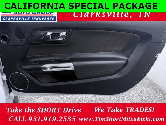 California Special (Black Painted Mirror Caps, Black Raised Decklid Spoiler, Diamond Plate Aluminum Instrument Panel, Door Inserts, Leather/Miko Suede Seating Surfaces, Prem Carpeted Floor Mats w/Red Contrast Stitching, Unique Black Upper & Lower Grilles, and Wheels: 19 Ebony Black Painted Machined Alum), Equipment Group 401A (Blind Spot Info System w/Cross-Traffic Alert, HD Radio, Memory Driver Seat, Mirrors & Ambient Lighting, and Shaker Pro Audio System), 4-Wheel Disc Brakes, 9 Speakers, ABS brakes, Air Conditioning, Alloy wheels, AM/FM radio: SiriusXM, AM/FM Stereo w/Single CD Player, Auto-dimming Rear-View mirror, Automatic temperature control, Block heater, Brake assist, Bumpers: body-color, CD player, Climate Controlled Heated/Cooled Front Seats, Compass, Convertible roof lining, Delay-off headlights, Driver door bin, Driver vanity mirror, Dual front impact airbags, Dual front side impact airbags, Ebony Tape Stripe, Electronic Stability Control, Emergency communication system: 911 Assist, Exterior Parking Camera Rear, Four wheel independent suspension, Front anti-roll bar, Front Bucket Seats, Front Center Armrest, Front dual zone A/C, Front fog lights, Front reading lights, Fully automatic headlights, Garage door transmitter, Glass rear window, Heated door mirrors, Heated front seats, High-Intensity Discharge Headlights, Illuminated entry, Knee airbag, Leather Bucket Seats, Leather Shift Knob, Low tire pressure warning, Occupant sensing airbag, Outside temperature display, Overhead console, Panic alarm, Passenger door bin, Passenger vanity mirror, Power convertible roof, Power door mirrors, Power driver seat, Power passenger seat, Power steering, Power windows, Radio data system, Rear anti-roll bar, Rear window defroster, Remote keyless entry, Reverse Sensing System, Security system, SiriusXM Radio, Speed control, Speed-sensing steering, Speed-Sensitive Wipers, Spoiler, Steering wheel mounted audio controls, SYNC 3 Communications & Entertainment System, Tachometer, Telescoping steering wheel, Tilt steering wheel, Traction control, Trip computer, Turn signal indicator mirrors, Variably intermittent wipers, Ventilated front seats, Voltmeter, and Wheels: 18 x 8 Magnetic Painted/Machined.