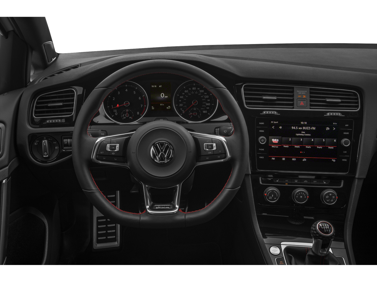 4-Wheel Disc Brakes, 6 Speakers, ABS brakes, Air Conditioning, Alloy wheels, AM/FM radio: SiriusXM, Anti-whiplash front head restraints, Brake assist, Bumpers: body-color, CD player, Compass, Delay-off headlights, Driver door bin, Driver vanity mirror, Dual front impact airbags, Dual front side impact airbags, Electronic Stability Control, Emergency communication system: VW Car-Net services (capabilities require enrollment or subscription), Exterior Parking Camera Rear, First Aid Kit, Forward collision: FCW w/Autonomous Emergency Braking mitigation, Four wheel independent suspension, Front anti-roll bar, Front Bucket Seats, Front Center Armrest, Front fog lights, Front reading lights, Fully automatic headlights, Heated door mirrors, Heated front seats, Heated Front Top Sport Seats, Illuminated entry, Leather Seating Surfaces, Leather Shift Knob, Low tire pressure warning, Luggage Net, Occupant sensing airbag, Outside temperature display, Overhead airbag, Overhead console, Panic alarm, Passenger door bin, Passenger vanity mirror, Power door mirrors, Power driver seat, Power moonroof, Power passenger seat, Power steering, Power windows, Radio data system, Radio: Composition Media w/8 Touchscreen, Rain sensing wipers, Rear anti-roll bar, Rear reading lights, Rear seat center armrest, Rear window defroster, Rear window wiper, Remote keyless entry, Roadside Assistance Kit, Rubber Mats Kit, Speed control, Speed-sensing steering, Speed-Sensitive Wipers, Split folding rear seat, Spoiler, Sport steering wheel, Steering wheel mounted audio controls, Tachometer, Telescoping steering wheel, Tilt steering wheel, Traction control, Trip computer, Turn signal indicator mirrors, Variably intermittent wipers, VW App-Connect (w/Apple CarPlay, Android Auto & MirrorLink), and Wheels: 18 5-Spoke 2-Tone Machined Alloy.