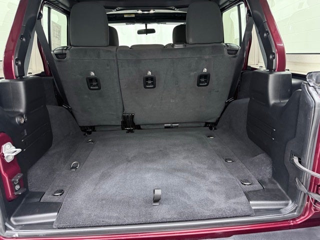 Dual Door Group w/Premium Uppers (Front 1-Touch Down Power Windows and Half Doors w/Uppers), Quick Order Package 25K Willys Sport (DISC) (4-Wheel Drive Swing Gate Decal, Anti-Spin Differential Rear Axle, Black Grille, Black Trail Rated Badge, Matte Black Jeep Badge, Mold In Color Bumper w/Gloss Black, MOPAR All-Weather Floor Mats (DISC), Willys Hood Decal, and Wrangler Decal), 3.45 Rear Axle Ratio, 4-Wheel Disc Brakes, 8 Speakers, ABS brakes, Air Conditioning, AM/FM radio, Aux Battery, Black 3-Piece Hard Top, Brake assist, Cloth Low-Back Bucket Seats, Compass, Delay-off headlights, Driver door bin, Driver vanity mirror, Dual front impact airbags, Dual front side impact airbags, Electronic Stability Control, Front anti-roll bar, Front Bucket Seats, Front Center Armrest w/Storage, Front fog lights, Front reading lights, Integrated roll-over protection, Jeep Trail Rated Kit, Low tire pressure warning, Manufacturer's Statement of Origin, No Soft Top, Non-Lock Fuel Cap w/o Discriminator, Normal Duty Suspension, Occupant sensing airbag, Outside temperature display, ParkView Rear Back-Up Camera, Passenger door bin, Passenger vanity mirror, Power steering, Radio data system, Radio: Uconnect 3 w/5 Display, Rear anti-roll bar, Rear reading lights, Remote Proximity Keyless Entry, SiriusXM Satellite Radio, Speed control, Split folding rear seat, Steering wheel mounted audio controls, Stop-Start Dual Battery System, Tachometer, Telescoping steering wheel, Tilt steering wheel, Traction control, Trip computer, Variably intermittent wipers, and Wheels: 17 x 7.5 Black Steel Styled.