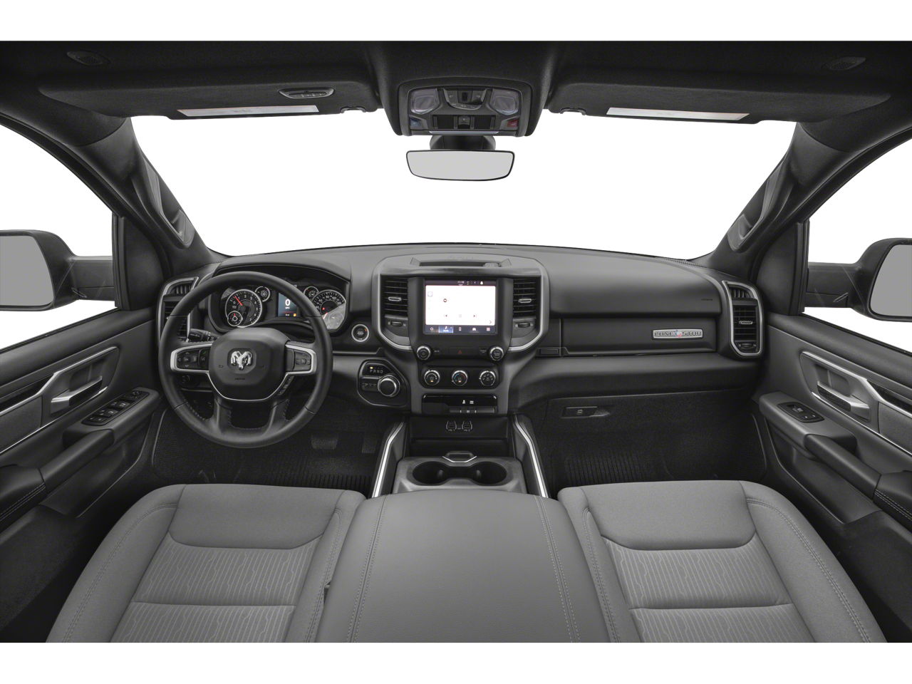 Bed Utility Group (MOPAR Deployable Bed Step and Pick-Up Box Lighting), Big Horn Level An Equipment Group (DISC) (4G LTE Wi-Fi Hot Spot, Auto-Dimming Rear-View Mirror, Bluetooth® Handsfree Phone & Audio, Class IV Receiver Hitch, Connectivity - US/Canada, Exterior Mirrors Courtesy Lamps, Exterior Mirrors w/Supplemental Signals, Foam Bottle Insert (Door Trim Panel), Radio: Uconnect 5 W w/8.4 Display, Rear Window Defroster, and Universal Garage Door Opener), Quick Order Package 25R Lone Star (Regional), Trailer Tow Group (Trailer Brake Control), 3 Rear Seat Head Restraints, 3.21 Rear Axle Ratio, 4 Way Front Headrests, 4-Wheel Disc Brakes, 48V Belt Starter Generator, 6 Speakers, ABS brakes, Air Conditioning, Alloy wheels, AM/FM radio, Black Exterior Mirrors, Brake assist, Bumpers: chrome, Cloth Bench Seat, Compass, Convex Wide-Angle Mirror Insert, Delay-off headlights, Driver door bin, Dual front impact airbags, Dual front side impact airbags, Electronic Stability Control, Emergency communication system: SiriusXM Guardian, Front anti-roll bar, Front Center Armrest w/Storage, Front fog lights, Front License Plate Bracket, Front reading lights, Front Seat Back Map Pockets, Front wheel independent suspension, Fully automatic headlights, Global Telematics Box Module (TBM), GPS Antenna Input, Heated door mirrors, Illuminated entry, Integrated Voice Command w/Bluetooth®, Leather steering wheel, Low tire pressure warning, Manual Adjust 4-Way Front Passenger Seat, Manufacturer's Statement of Origin, Occupant sensing airbag, Outside temperature display, Overhead airbag, Overhead console, Panic alarm, ParkView Rear Back-Up Camera, Passenger door bin, Passenger vanity mirror, Power door mirrors, Power steering, Power windows, Radio data system, Radio: Uconnect 3 w/5 Display, Rear 60/40 Folding Seat, Rear anti-roll bar, Rear seat center armrest, Rear step bumper, Remote keyless entry, Speed control, Split folding rear seat, Steering wheel mounted audio controls, Tachometer, Telescoping steering wheel, Tilt steering wheel, Traction control, Trip computer, Variably intermittent wipers, Voltmeter, Wheel to Wheel Side Steps, and Wheels: 18 x 8 Cast-Aluminum Painted.