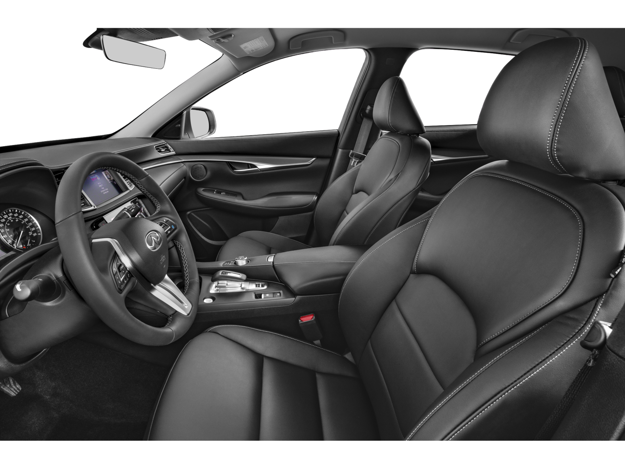4-Wheel Disc Brakes, 5.846 Axle Ratio, 6 Speakers, ABS brakes, Air Conditioning, Alloy wheels, AM/FM radio: SiriusXM, Auto High-beam Headlights, Auto-dimming Rear-View mirror, Automatic temperature control, Bose 12-Speaker Premium Audio, Brake assist, Bumpers: body-color, CD player, Delay-off headlights, Driver door bin, Driver vanity mirror, Dual front impact airbags, Dual front side impact airbags, Electronic Stability Control, Emergency communication system: INFINITI InTouch (1-year complimentary trial), Exterior Parking Camera Rear, Floor Mats, Four wheel independent suspension, Front anti-roll bar, Front Bucket Seats, Front Center Armrest, Front dual zone A/C, Front reading lights, Fully automatic headlights, Garage door transmitter: HomeLink, Heated door mirrors, Heated Front Bucket Seats, Heated front seats, Illuminated entry, Illuminated Kick Plates, Knee airbag, Leather Shift Knob, Leather steering wheel, Leather-Appointed Seat Trim, Literature Kit, Low tire pressure warning, Memory seat, Occupant sensing airbag, Outside temperature display, Overhead airbag, Overhead console, Panic alarm, Passenger door bin, Passenger vanity mirror, Power door mirrors, Power driver seat, Power Liftgate, Power moonroof, Power passenger seat, Power steering, Power windows, Radio data system, Radio: HD Audio System, Rear anti-roll bar, Rear Parking Sensors, Rear reading lights, Rear seat center armrest, Rear side impact airbag, Rear window defroster, Rear window wiper, Remote keyless entry, Security system, Speed control, Speed-sensing steering, Speed-Sensitive Wipers, Splash Guards (Set of 4), Split folding rear seat, Spoiler, Steering wheel mounted audio controls, Tachometer, Telescoping steering wheel, Tilt steering wheel, Traction control, Trip computer, Turn signal indicator mirrors, Variably intermittent wipers, and Wheels: 19 Silver Painted Aluminum Alloy.