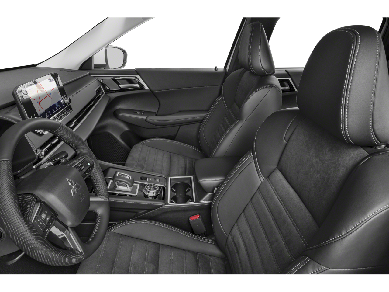 3rd row seats: split-bench, 4-Wheel Disc Brakes, 6 Speakers, ABS brakes, Air Conditioning, Alloy wheels, AM/FM radio: SiriusXM, Android Auto & Apple CarPlay, Auto High-beam Headlights, Automatic temperature control, Axle Ratio: TBD, Brake assist, Bumpers: body-color, Driver door bin, Driver vanity mirror, Dual front impact airbags, Dual front side impact airbags, Electronic Stability Control, Emergency communication system: Mitsubishi Connect w/ 24-month trial, Four wheel independent suspension, Front anti-roll bar, Front Bucket Seats, Front Center Armrest w/Storage, Front dual zone A/C, Front fog lights, Front reading lights, Fully automatic headlights, Headlight cleaning, Heated door mirrors, Heated Front Bucket Seats, Heated front seats, Illuminated entry, Knee airbag, Leather Shift Knob, Leather steering wheel, Low tire pressure warning, Navigation System, Occupant sensing airbag, Outside temperature display, Overhead airbag, Overhead console, Panic alarm, Passenger door bin, Passenger vanity mirror, Power door mirrors, Power driver seat, Power Liftgate, Power steering, Power windows, Radio data system, Radio: AM/FM 9 Smartphone Link Display Audio, Rain sensing wipers, Rear anti-roll bar, Rear seat center armrest, Rear side impact airbag, Rear window defroster, Rear window wiper, Reclining 3rd row seat, Remote keyless entry, Security system, Speed control, Speed-Sensitive Wipers, Split folding rear seat, Spoiler, Steering wheel mounted audio controls, Synthetic Leather Seating Surfaces, Tachometer, Telescoping steering wheel, Tilt steering wheel, Traction control, Trip computer, Turn signal indicator mirrors, Variably intermittent wipers, and Wheels: 20 Two-Tone Alloy.