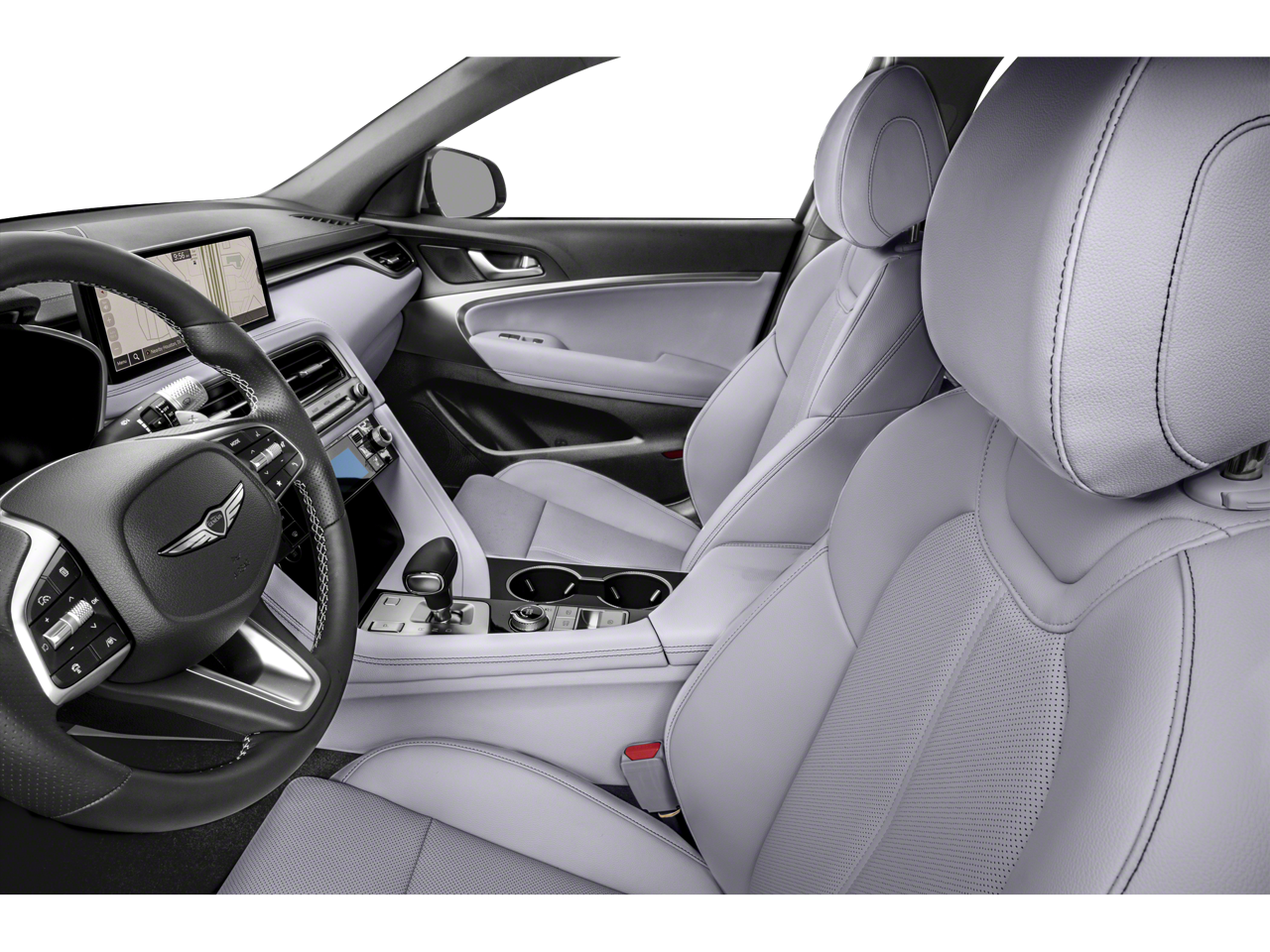 4-Wheel Disc Brakes, 6 Speakers, ABS brakes, Air Conditioning, Alloy wheels, AM/FM radio: SiriusXM, Android Auto & Apple CarPlay, Anti-whiplash front head restraints, Auto High-beam Headlights, Auto-dimming Rear-View mirror, Automatic temperature control, Brake assist, Bumpers: body-color, Delay-off headlights, Driver door bin, Driver vanity mirror, Dual front impact airbags, Dual front side impact airbags, Electronic Stability Control, Emergency communication system: Genesis Connected Services, Exterior Parking Camera Rear, Four wheel independent suspension, Front anti-roll bar, Front Bucket Seats, Front Center Armrest, Front dual zone A/C, Front reading lights, Fully automatic headlights, Garage door transmitter: HomeLink, Heated door mirrors, Heated front seats, Heated Multi-Adjustable Front Bucket Seats, Illuminated entry, Knee airbag, Leather steering wheel, Leatherette Seating Surfaces, Low tire pressure warning, Navigation System, Occupant sensing airbag, Outside temperature display, Overhead airbag, Overhead console, Panic alarm, Passenger door bin, Passenger vanity mirror, Power door mirrors, Power driver seat, Power passenger seat, Power steering, Power windows, Radio: AM/FM/SiriusXM/HD Audio System, Rear anti-roll bar, Rear reading lights, Rear seat center armrest, Rear side impact airbag, Rear window defroster, Remote keyless entry, Security system, Speed control, Speed-Sensitive Wipers, Split folding rear seat, Steering wheel mounted audio controls, Tachometer, Telescoping steering wheel, Traction control, Trip computer, Turn signal indicator mirrors, Variably intermittent wipers, and Wheels: 19 x 8.0J Fr & 19 x 8.5J Rr Alloy.