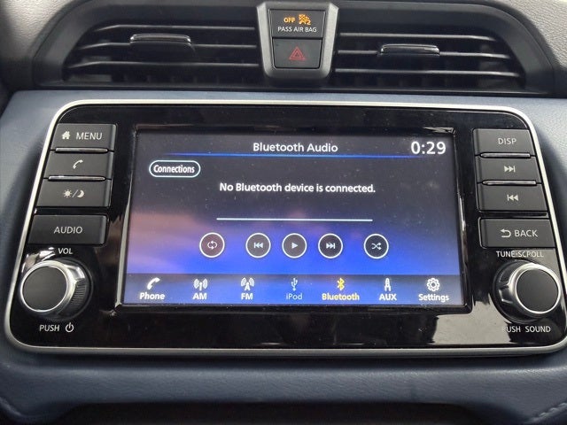 - Radio: AM/FM Audio System -inc: RDS, MP3, aux-in, 7" Advanced Drive-Assist Display, NissanConnect featuring Apple CarPlay and Android Auto, Bluetooth® hands-free phone system, streaming audio via Bluetooth®, interface for iPod and other compatible devices, hands-free text messaging assistant, Siri Eyes Free/Google Assistant voice recognition, 4 speakers and 3 USB ports (2-charge only)